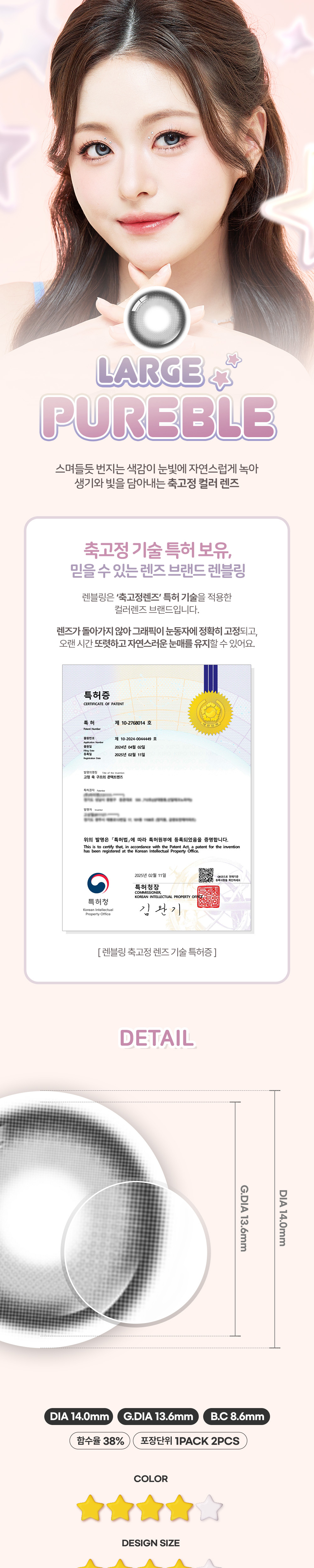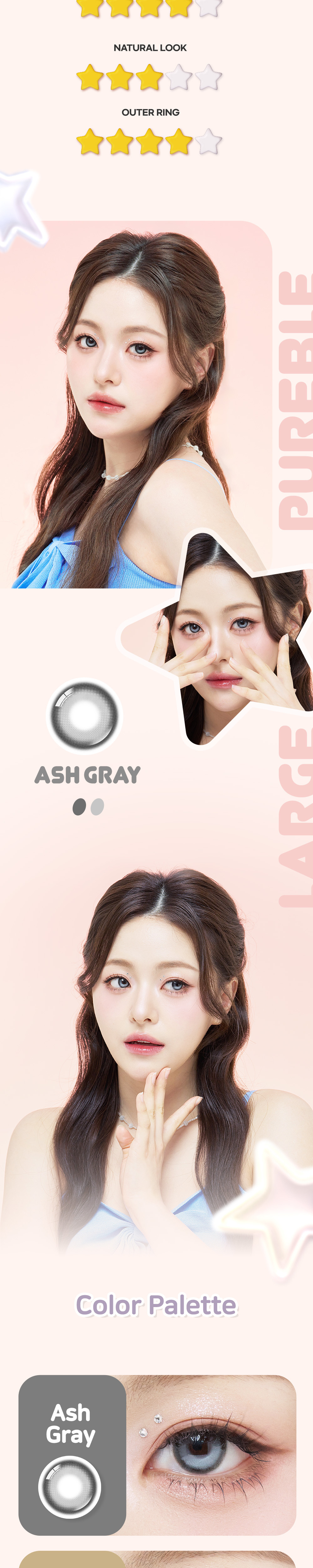 [月拋13.6mm] LENBLING 1 Month Large Pureble Ash Gray 彩妝隱形眼鏡|每盒2片