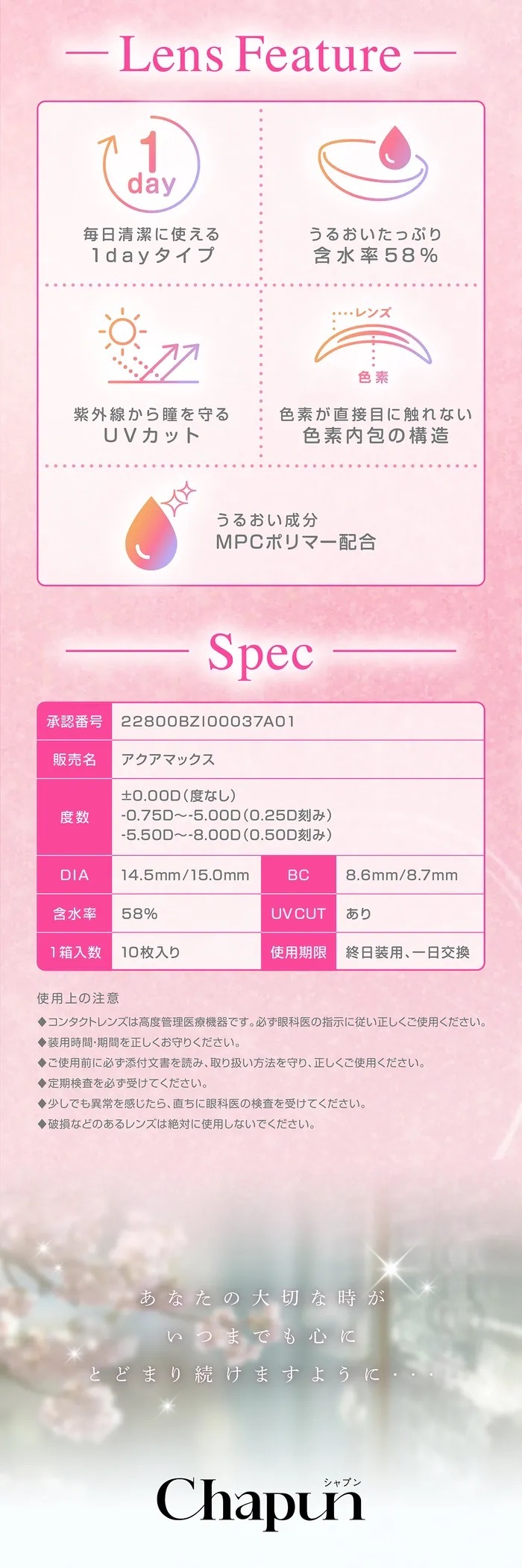 | 近視度數 | 0.00, -0.75, -1.00, -1.25, -1.50, -1.75, -2.00, -2.25, -2.50, -2.75, -3.00, -3.25, -3.50, -3.75, -4.00, -4.25, -4.50, -4.75, -5.00, -5.50, -6.00, -6.50, -7.00, -7.50, -8.00 |