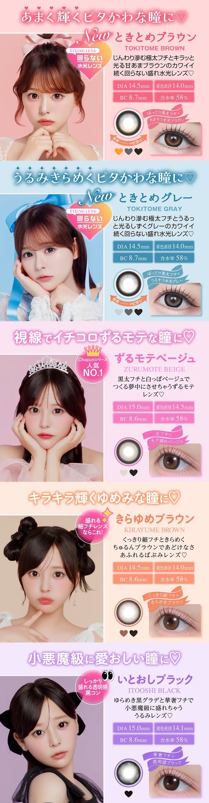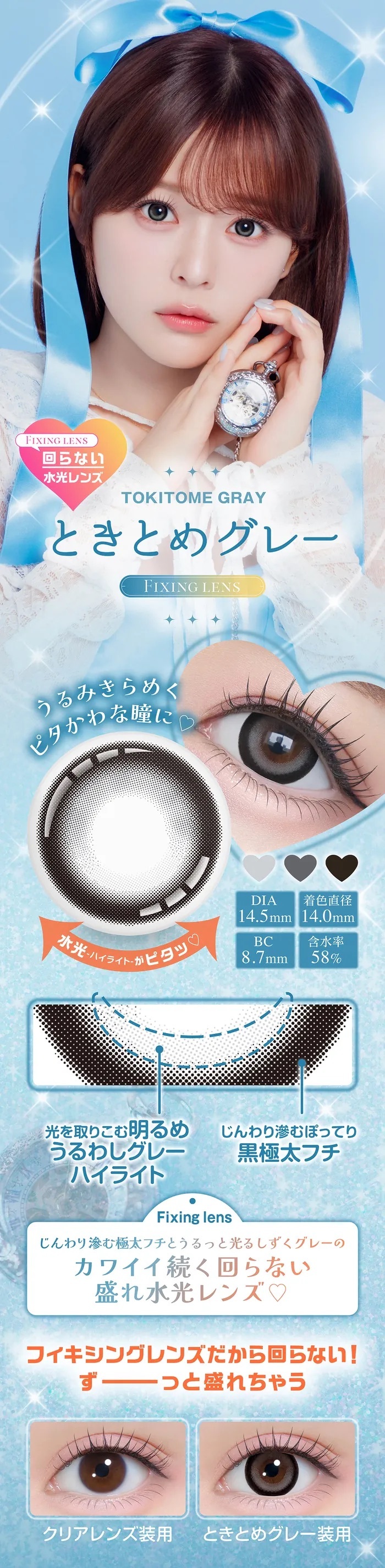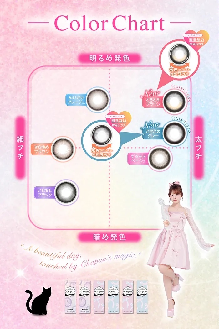 Chapun 1 Day Tokitome Gray 灰藍水光加上極粗灰黑外圈,打造濕潤透亮感的冷感瞳孔,散發自然、無害又微萌的氣場,適合日常妝也能駕馭。