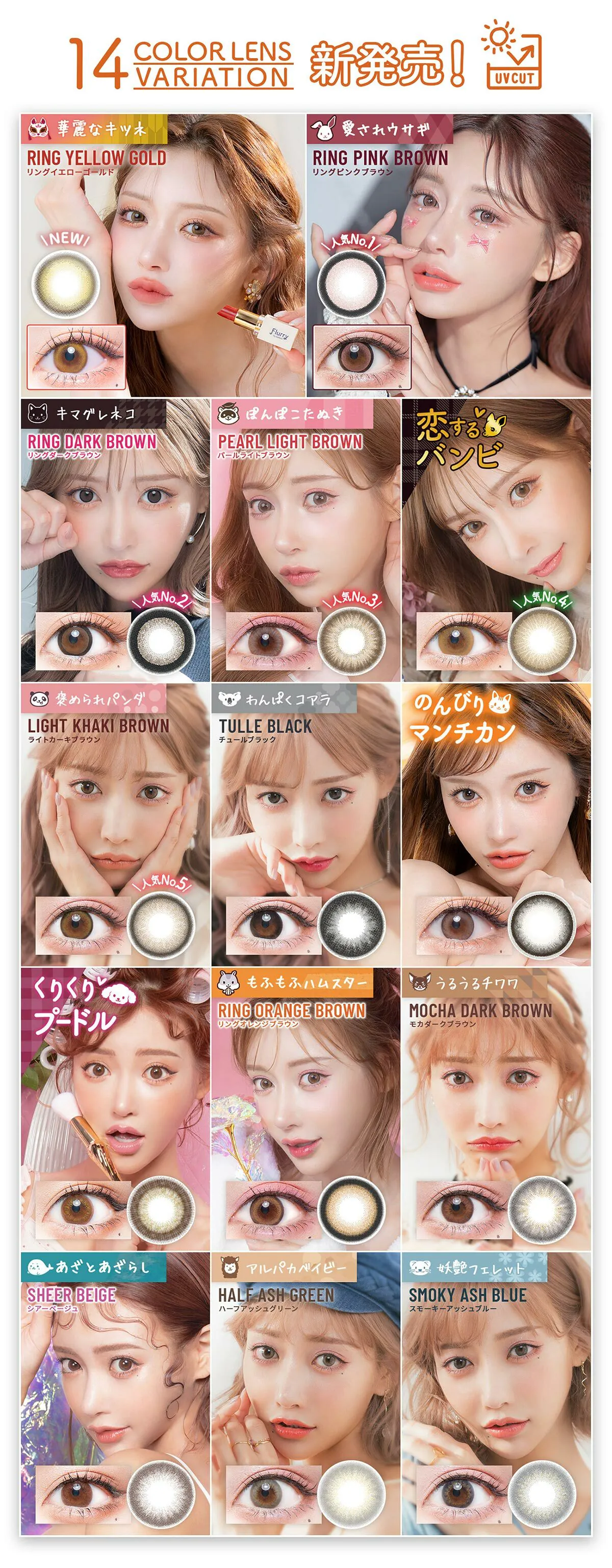 Flurry 史上最大的著色直徑 14.6mm。Ring Large Brown雖然是「粗邊 x 大直徑」的設計,但棕色調能蓬鬆地融入瞳孔,不會死板。推薦給追求極致大眼效果但又要保持柔和感的女生
