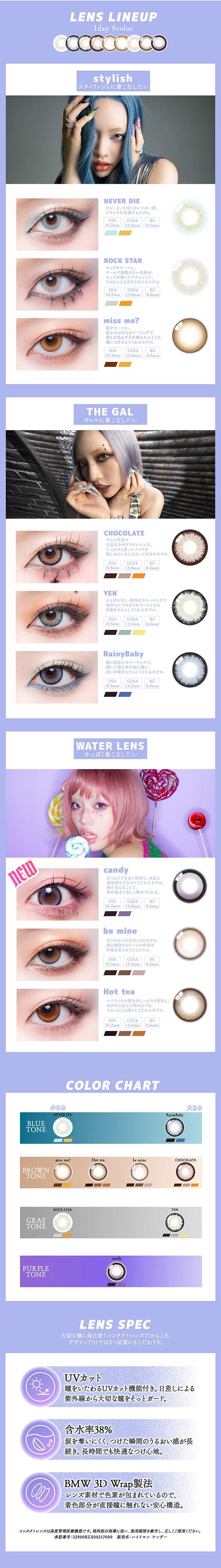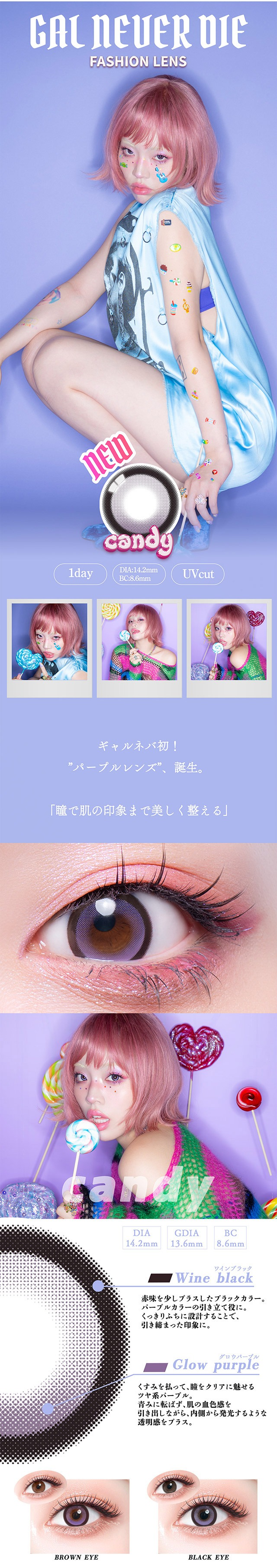 辣妹魂不滅!日本 Gal Never Die 首款紫色日拋「Candy (糖果紫)」絕美誕生。沒有粉色的甜膩,沒有紅色的強勢,專屬大人的微醺血色感。戴上瞬間中和黃氣,讓肌膚視覺提亮。搭配 38% 低含水抗乾澀設計,是令人一戴上癮的顯白神仙色!