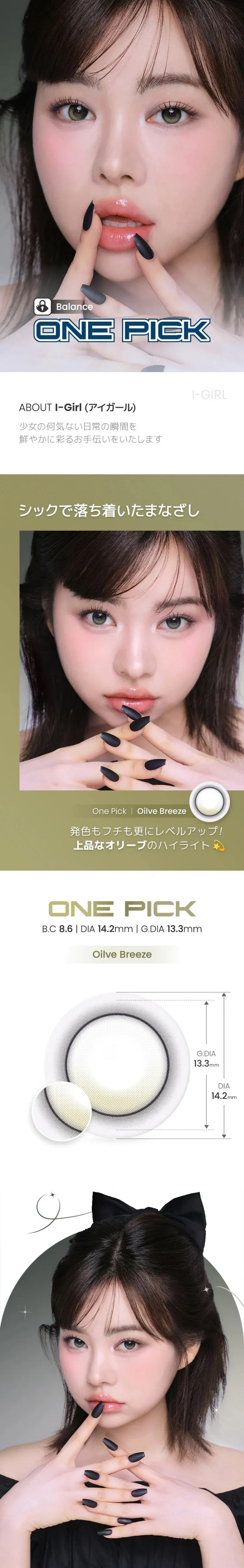 Olive Breeze以細緻的橄欖色高光點綴,搭配提升發色與邊緣設計的技術,讓雙眼呈現出高貴且內斂的氣質。
