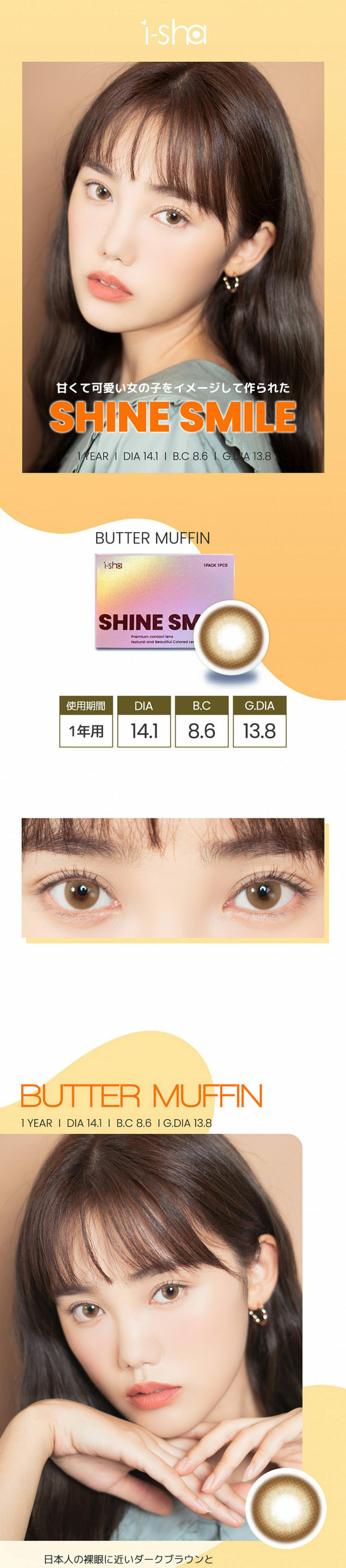 I-SHA Shine Smile Butter MUffin 每年拋棄型彩妝隱形眼鏡|每盒1片