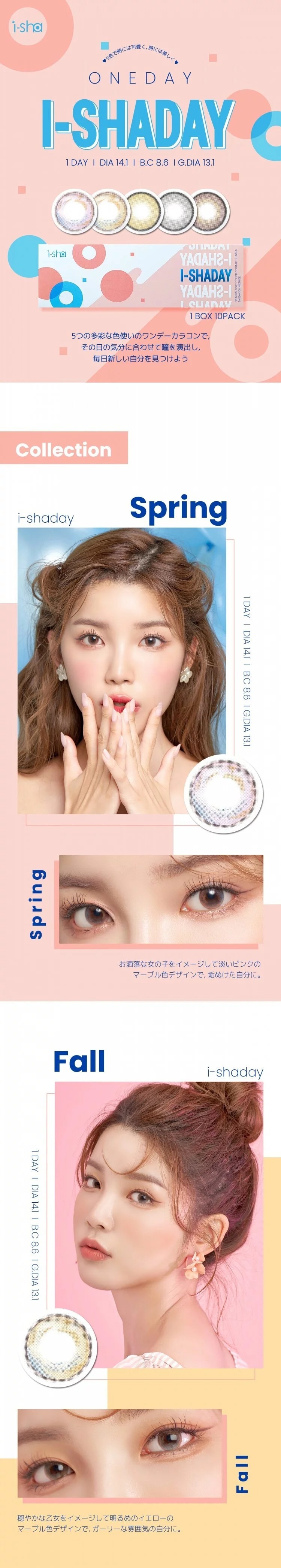 韓國超人氣隱形眼鏡品牌I-DOL又推出全新日拋啦!今次日本版i-DOL (I-SHA) 推出的日拋款式較特別,一盒包含5款設計,每個設計有2片,讓你可以每天擁有不同感覺的美瞳,一樣充滿空靈感!懶惰不想選款的美寶寶們最佳選擇!