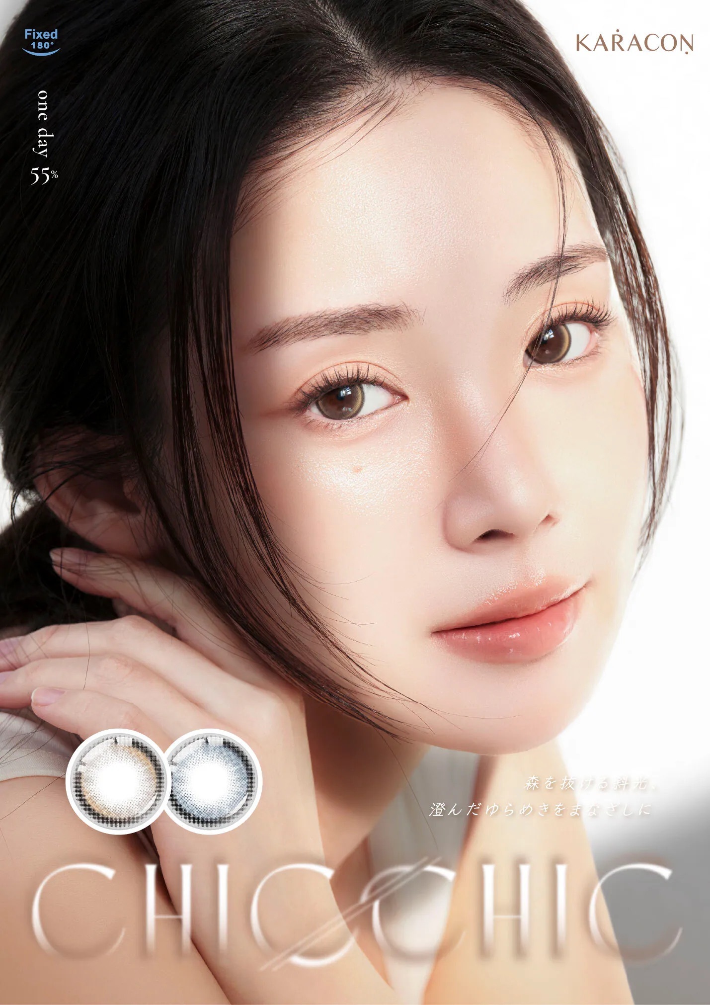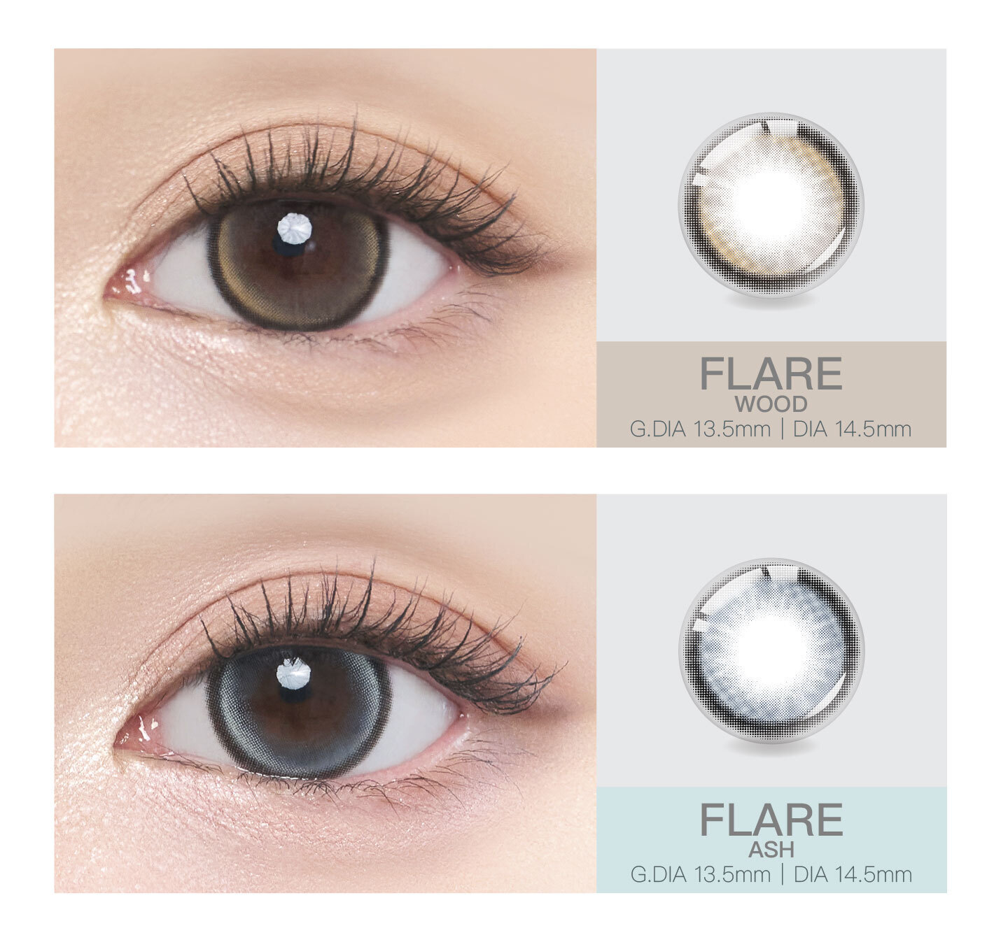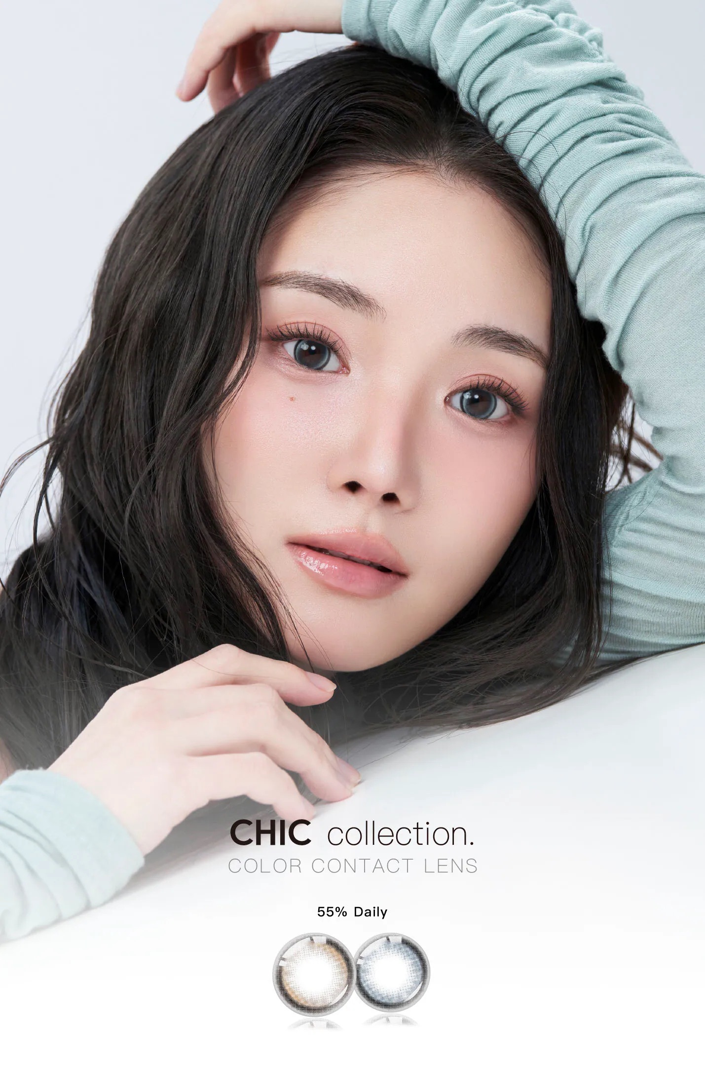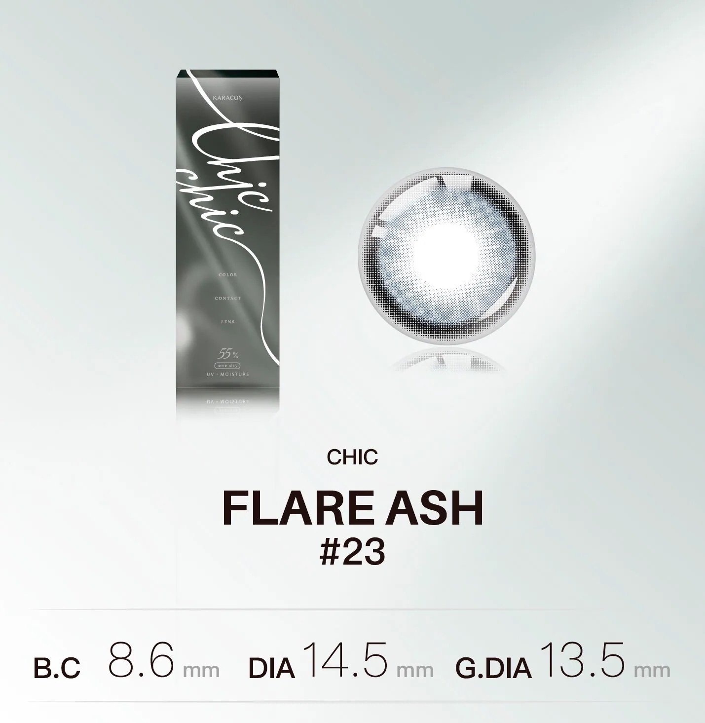 #23 Flare Ash 光影石灰。搭載「Fixed 180」定位技術,定格絕美瞬間。帶有透明感的冷調灰綠色,呈現如光影投射在石面上的澄澈感,打造高級清冷的混血眼。