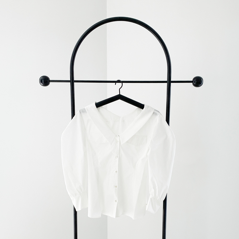 這件襯衫凸顯出女性化的線條。