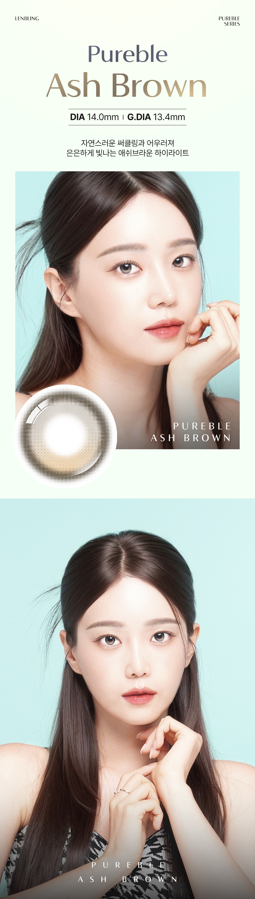 [月拋13.4mm] LENBLING 1 Month Pureble Ash Gray 彩妝隱形眼鏡|每盒2片