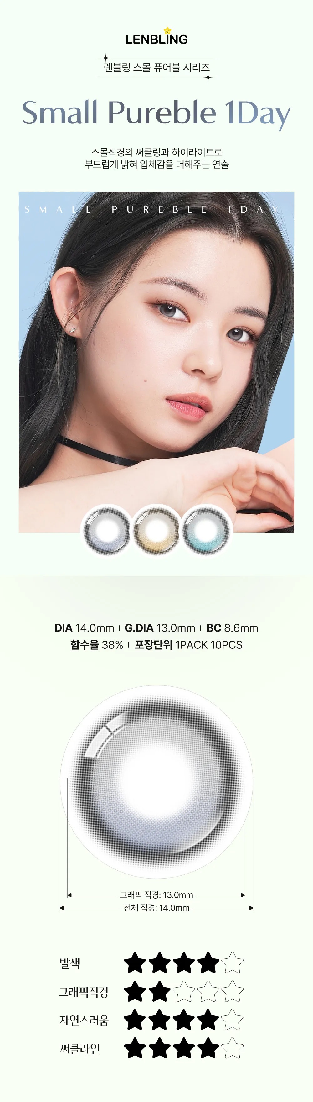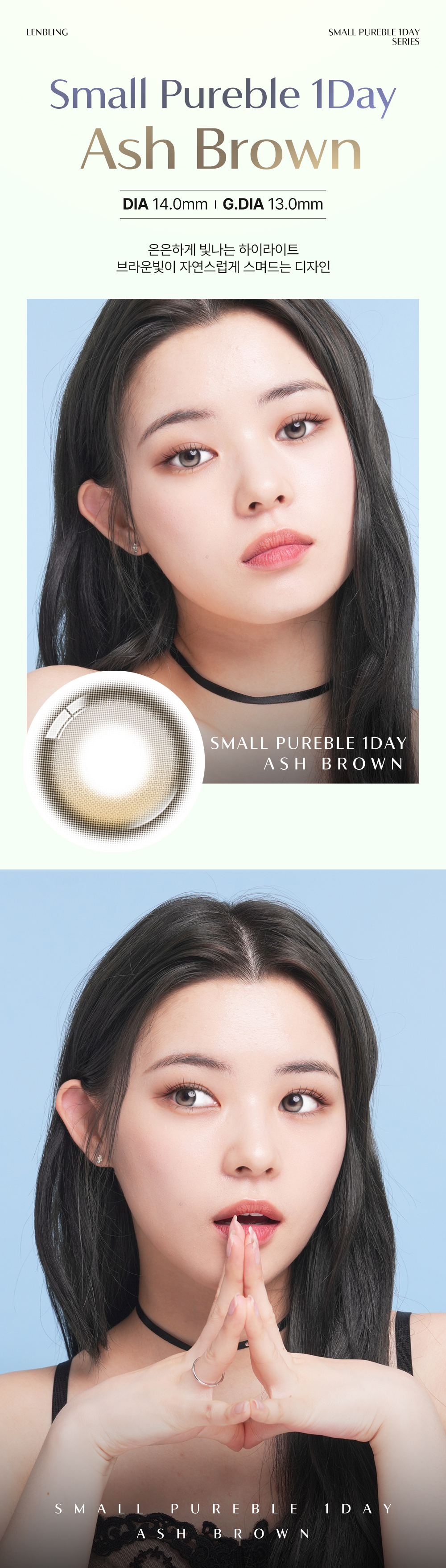 [小直徑] Lenbling Small Pureble 1 Day Ash Brown|日拋彩妝隱形眼鏡|每盒10片