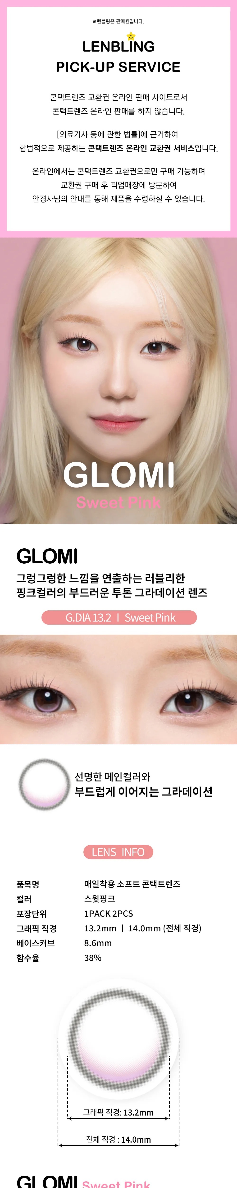 [月拋] Lenbling Glomi 1 Month Sweet Pink|彩妝隱形眼鏡|每盒2片
