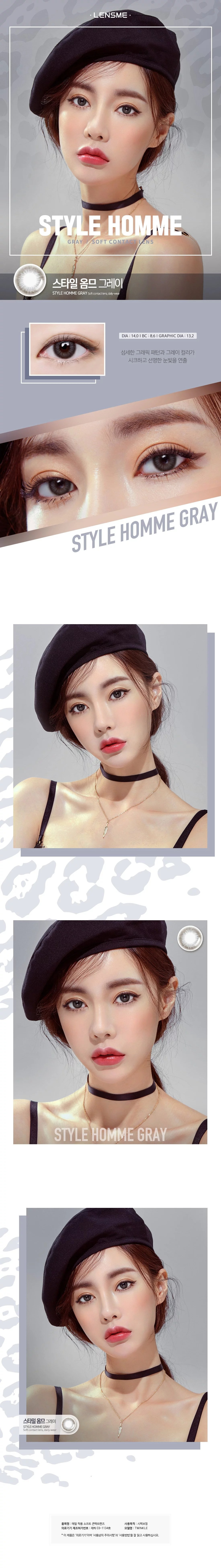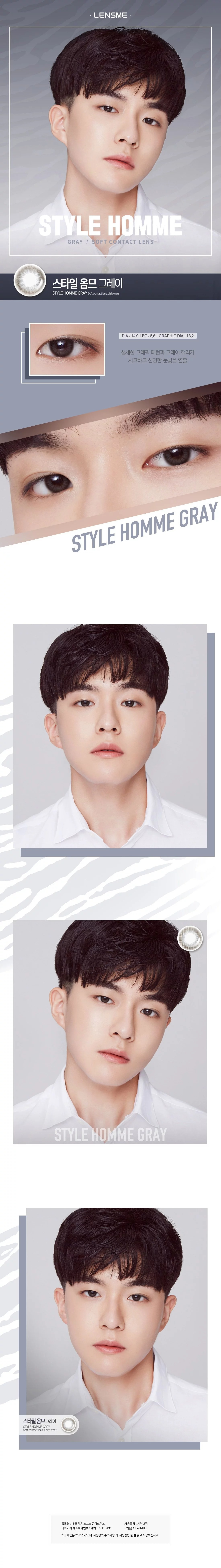 [預訂][月拋] LENSME STYLE HOMME 每月拋棄彩妝隱形眼鏡|2片 (Gray)