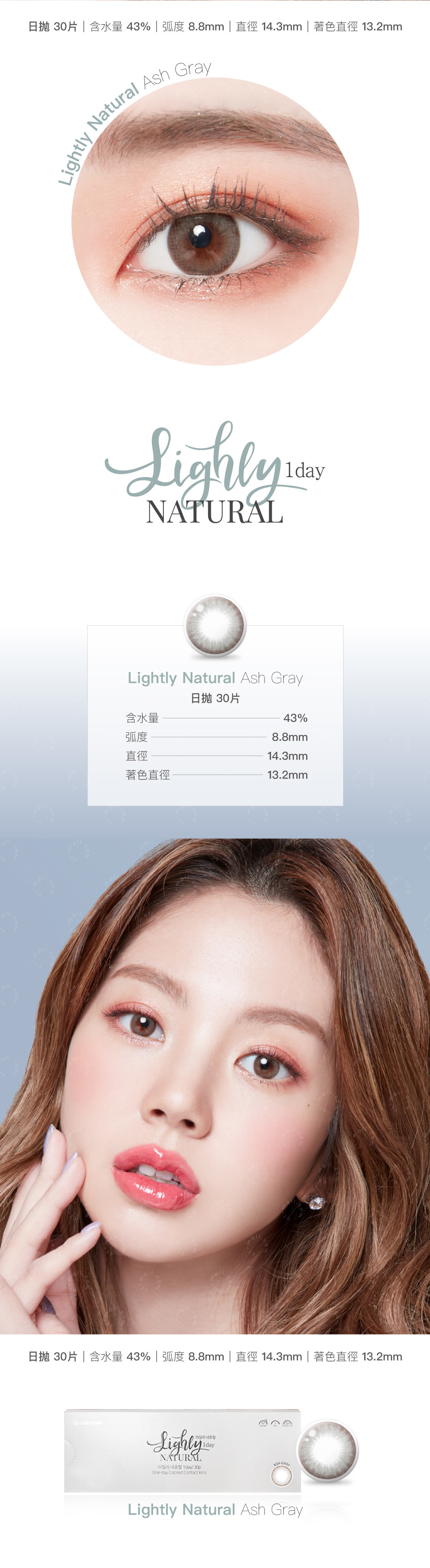 [預訂]  Lenstown Lighly  Natural每日拋棄彩妝隱形眼鏡|每盒30片 ( Ash Gray )