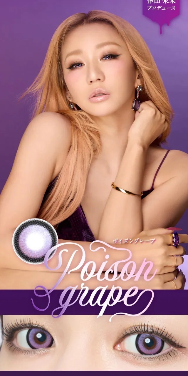 Poison Grape 冷感葡萄紫 × 柔粉光暈的層次組合,在眼睛中呈現出深邃、甜美、略帶神秘的紫光效果,既可愛又帶點辣妹氣場。