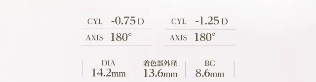 0.00, -0.50, -0.75, -1.00, -1.25, -1.50, -1.75, ,-2.00, -2.25, -2.50, -2.75, -3.00, -3.25, -3.50, -3.75, -4.00, -4.25, -4.50, -4.75, -5.00, -5.25, -5.50, -5.75, -6.00, -6.50, -7.00, -7.50, -8.00 CYL: -0.75, -1.25 AXIS: 180 (固定線位) |