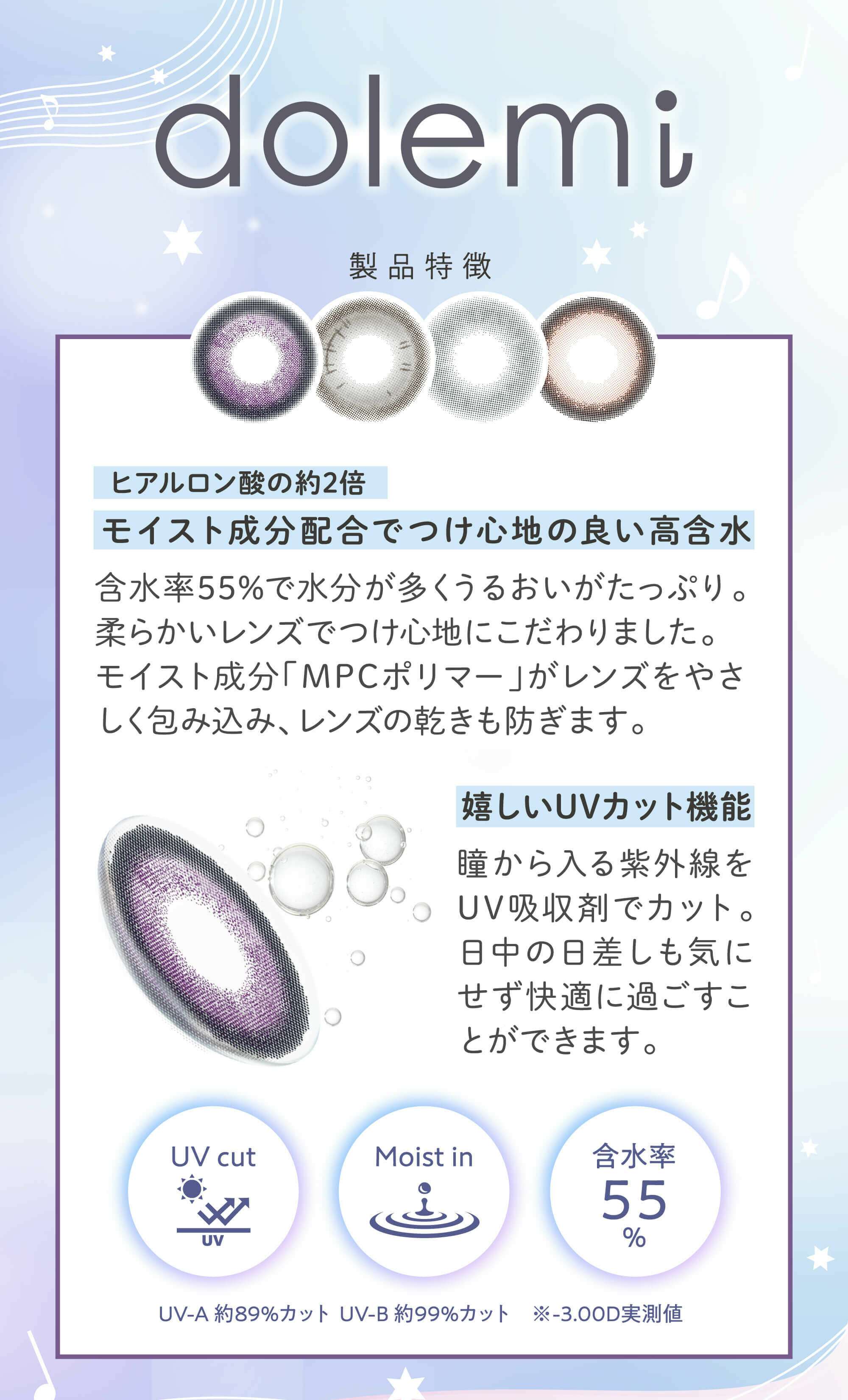 | 近視度數 | 0.00, -0.75, -1.00, -1.25, -1.50, -1.75, -2.00, -2.25, -2.50, -2.75, -3.00, -3.25, -3.50, -3.75, -4.00, -4.25, -4.50, -4.75, -5.00, -5.25, -5.50, -5.75, -6.00, -6.50, -7.00, -7.50, -8.00 |