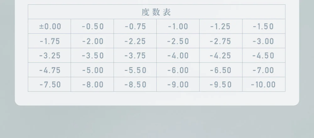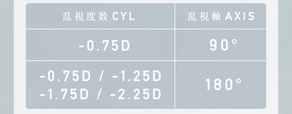 散光度數: -0.75, -1.25, -1.75, -2.25