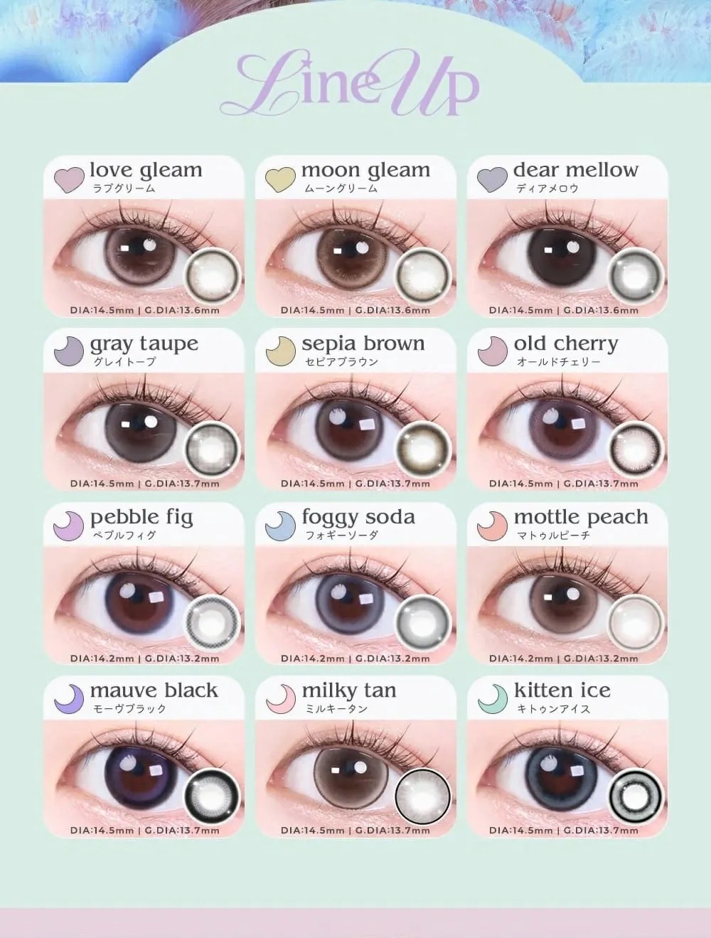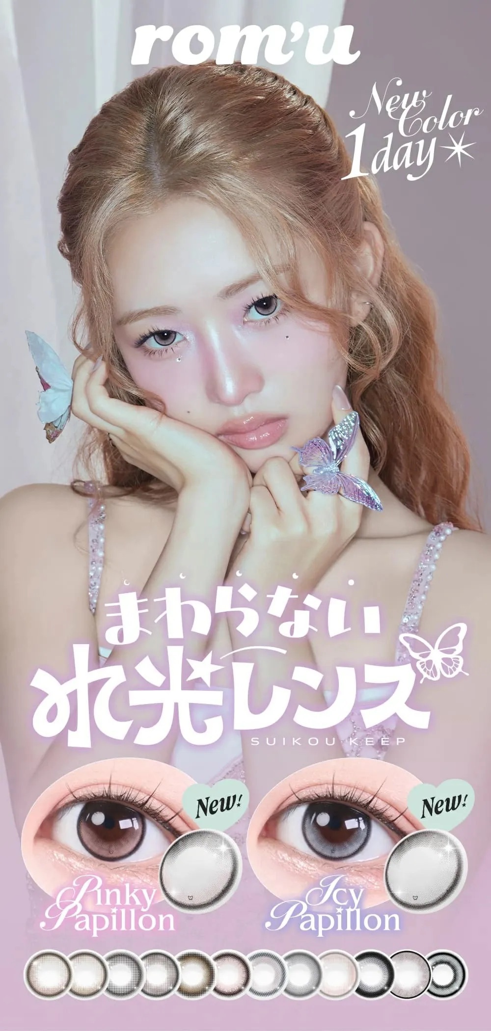 rom'u 1 Day Love Gleam 以深棕色基調設計,搭配細緻自然的紋理,營造出溫柔且深邃的眼神效果。它的透明感讓雙眸看起來更加明亮有神,適合日常佩戴或搭配自然妝容,展現低調卻迷人的氣質。