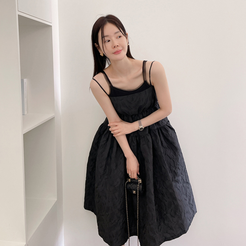 即使像協調一樣搭配無袖連衣裙,也能營造出性感的造型。