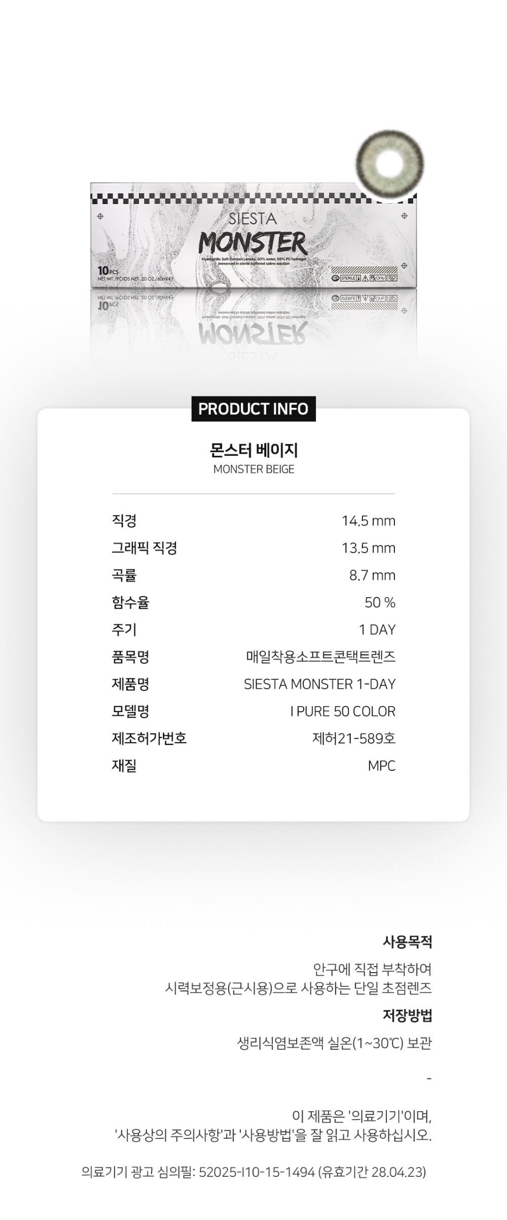 [日拋] SIESTA MONSTER 1 Day BEIGE 彩妝隱形眼鏡|每盒10片