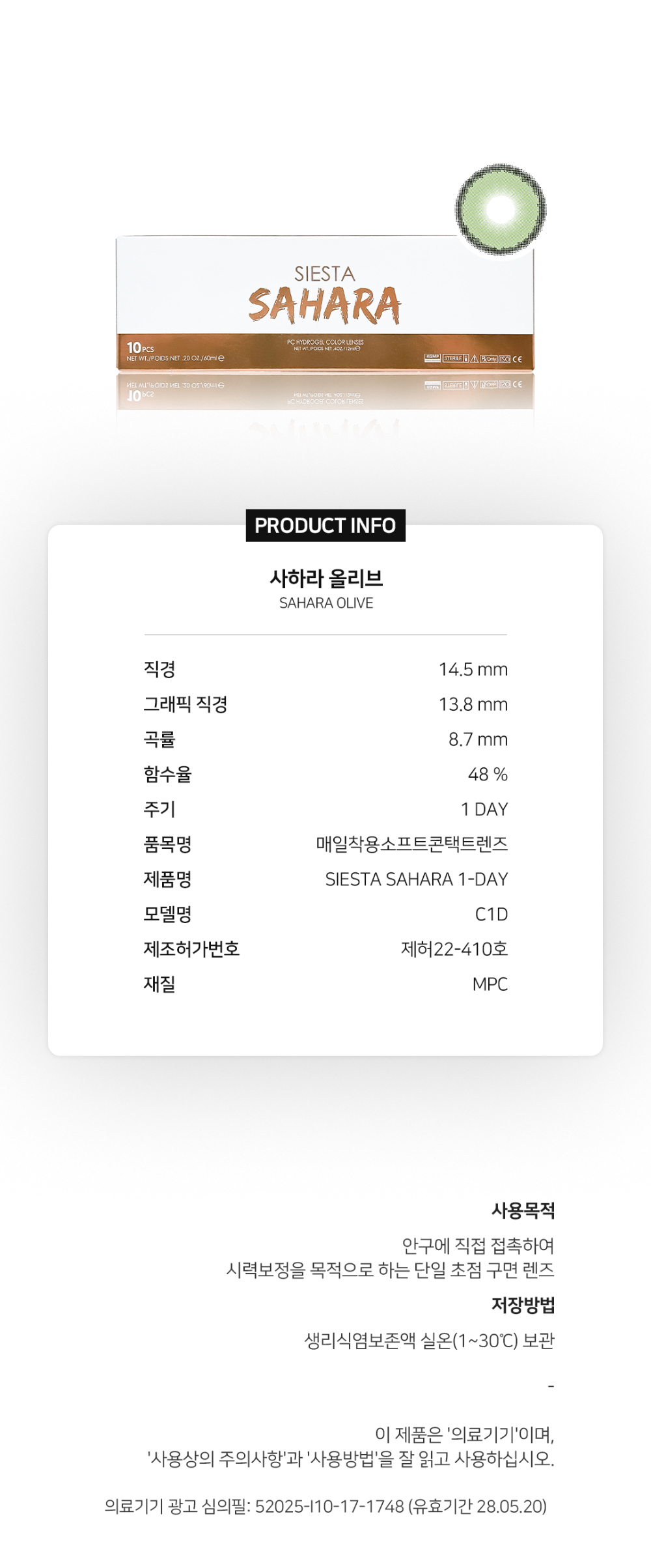 [日拋] SIESTA SAHARA 1 Day Olive 彩妝隱形眼鏡|每盒10片