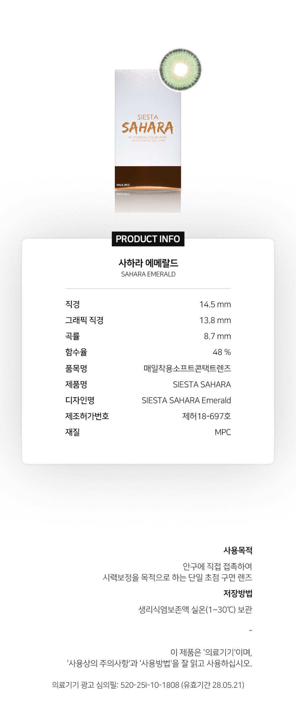 [月拋] SIESTA SAHARA 1 Month Emerald 彩妝隱形眼鏡|每盒2片