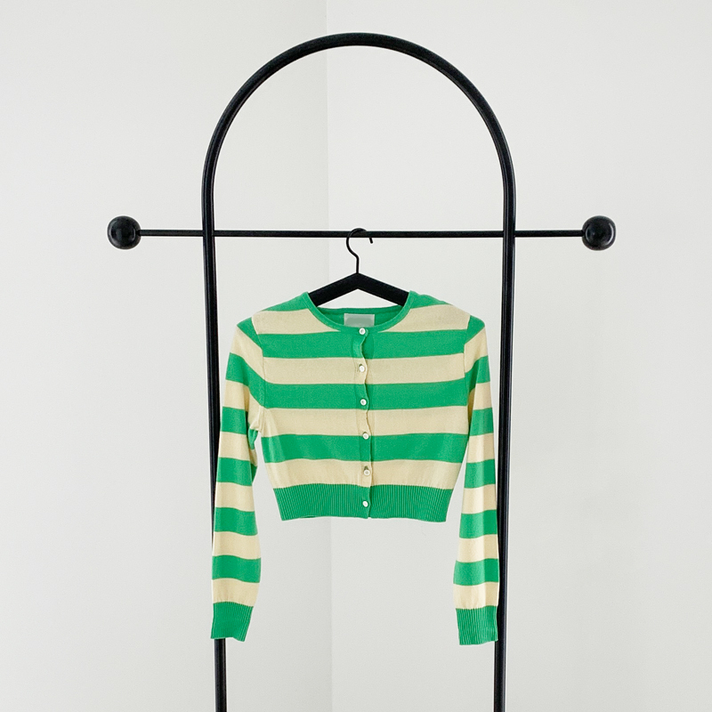 打造時尚造型的條紋開衫。