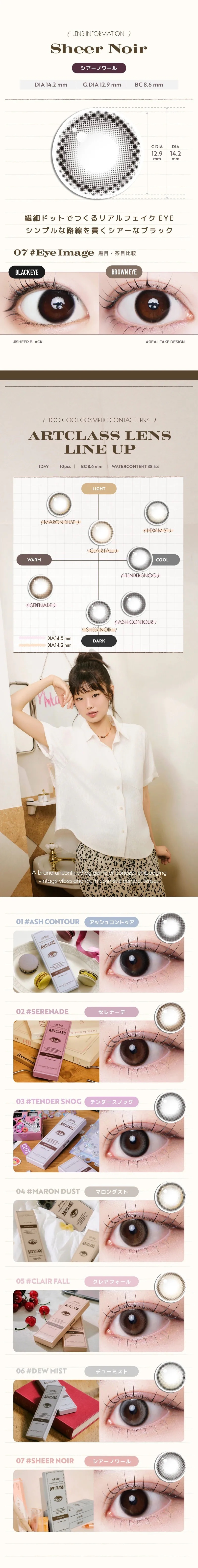 Sheer Noir 採用透亮黑調與小直徑設計,重現天生黑瞳的濕潤感。