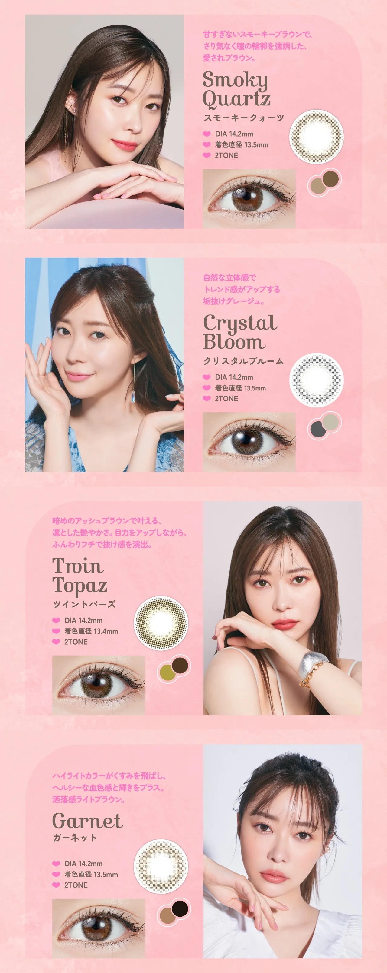 自然不誇張,以TOPAZ寶石般通透感作設計靈感,細膩設計強調展現眼球的透明感與水潤光澤。